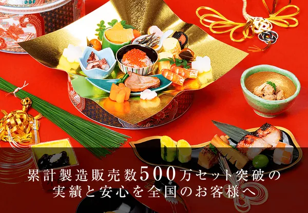 豊富な経験と技術を持つ老舗メーカーであるため、お届け日の指定やカスタマーサポートも充実しています。また、累計500万セットの販売実績があるため、多くの方から支持される高品質で美味しいおせちを手軽に手に入れることができます。