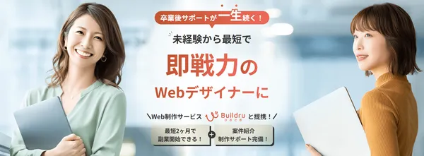卒業後も安心して案件に挑戦でき、継続的に実績と収入を積み上げられるので、「未経験からWebデザインで稼げるようになりたい」と考えている方にはピッタリのサポート内容と言えます。