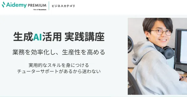 業務で生成AIを実務レベルで使いこなしたい方におすすめなのが、Aidemy Premium(生成AI活用実践講座)です。