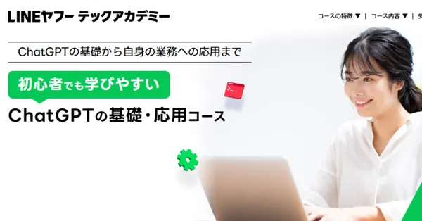 ChatGPTを基礎から業務応用まで体系的に学び、受講料最大70%補助を受けたい方におすすめなのが、LINEヤフーテックアカデミー ChatGPT講座です。