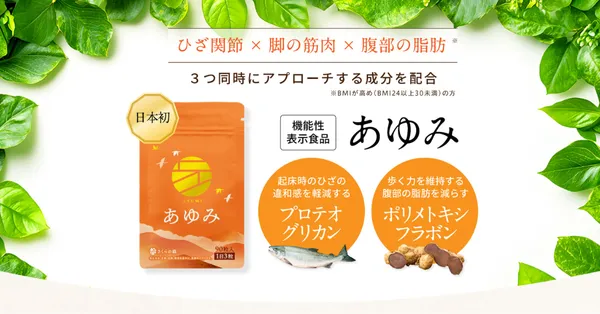 医師の監修と理学療法士の共同開発によって生まれた点も特徴で、膝関節・脚の筋力・腹部脂肪の3つに働きかける機能性表示食品として、日々の歩行を支えます。