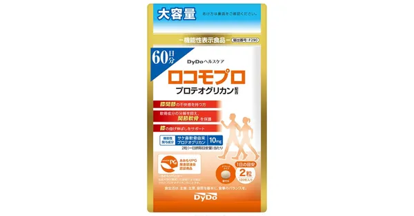 ロコモプロは、飲料メーカーとして知られるダイドードリンコが販売する関節ケアサプリメントで、これまでに累計700万袋以上が販売されています。