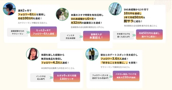 副業が初めての方や、インスタをただ見るだけだった方でも、多くの受講生が着実に成果を出しています。バズカレッジが多くの方から選ばれる理由は、初心者でも迷わず収益化までの道筋をたどれる、わかりやすいカリキュラムにあります。