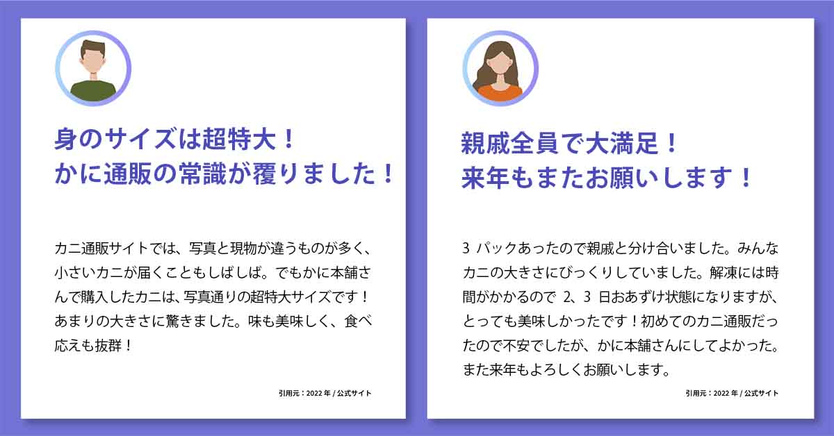 かに本舗のお得で美味しい蟹は多くの実際の利用者さんからも大好評です。