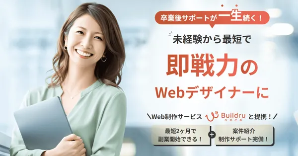 「挫折せずに学びきれる」「完全未経験からでもWEBデザインを学べる」と人気を集めています。